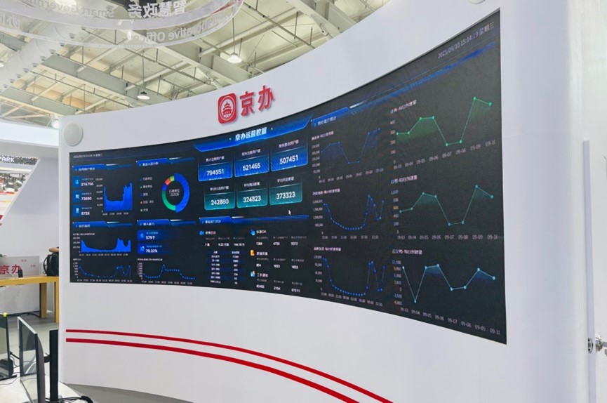 这是由北京市大数据中心打造,京东科技提供技术支持的“京办”智能政务协同办公平台带来的体验,这也是京办首次亮相服贸会展台。作为北京市政务办公应用的统一入口,京办凭借其卓越的跨层级、跨部门协同沟通能力,为全市政务工作搭建起一个统一、智能、安全的协同办公平台,成为全国政务协同领域的标杆之作。京办贯通市、区、街、居四级政务体系,目前,已覆盖北京16+1个区及全部114家市级单位,可支撑50余万人员在线协作,实现跨层级、跨部门高效协同,市级单位平均日活率超80%,有力保障北京市政务办公各类场景。在“一带一路”、冬奥指挥等场景中,相关部门依托京办实现了全流程闭环调度指挥。