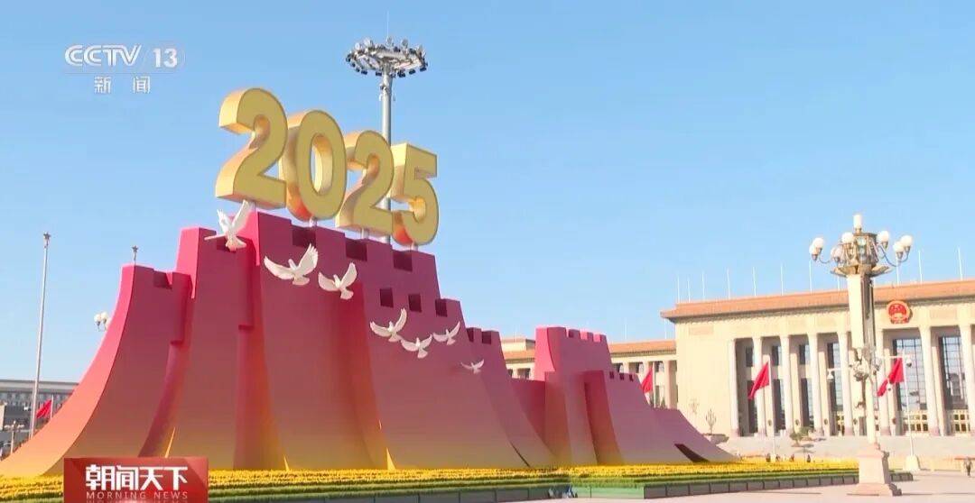 纪念大会服务保障和广场活动指挥部策划设计部部长 田忠利:整个广场布局上来说,我们把年号台矗立在人民英雄纪念碑前面的两侧,托举起1945、2025年号。很好地阐释了“众志成城”纪念大会的主题。